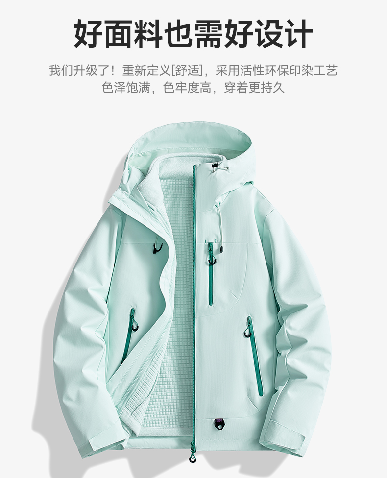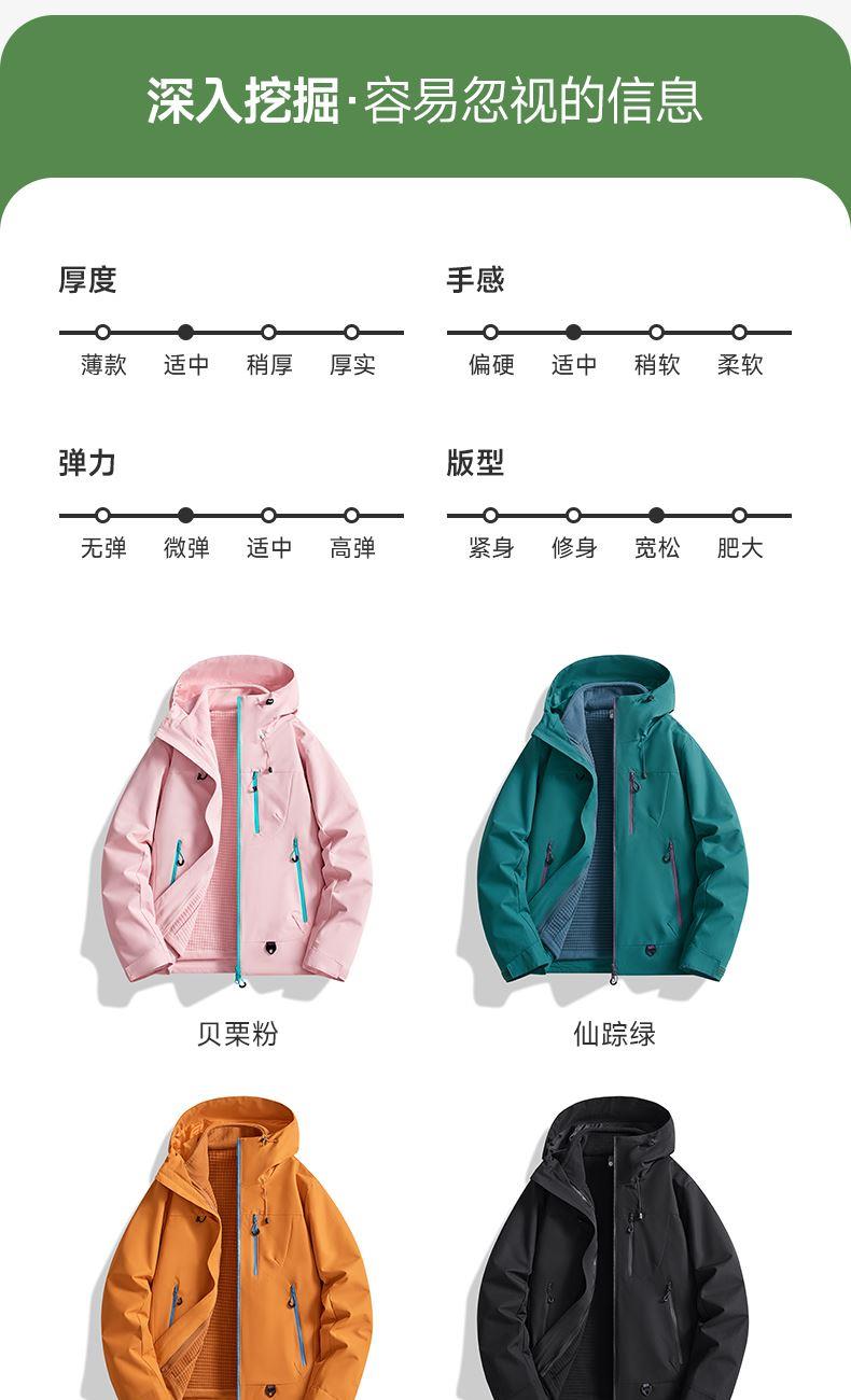 貨號(hào):E5602 材質(zhì):聚酯纖維 內(nèi)膽:搖粒內(nèi)膽 尺碼:XS-3XL 產(chǎn)品特點(diǎn): 面料工藝 透氣 防風(fēng) 防水 防污 蓄熱保暖 抵御寒冷與潮濕 登山戶外運(yùn)動(dòng)