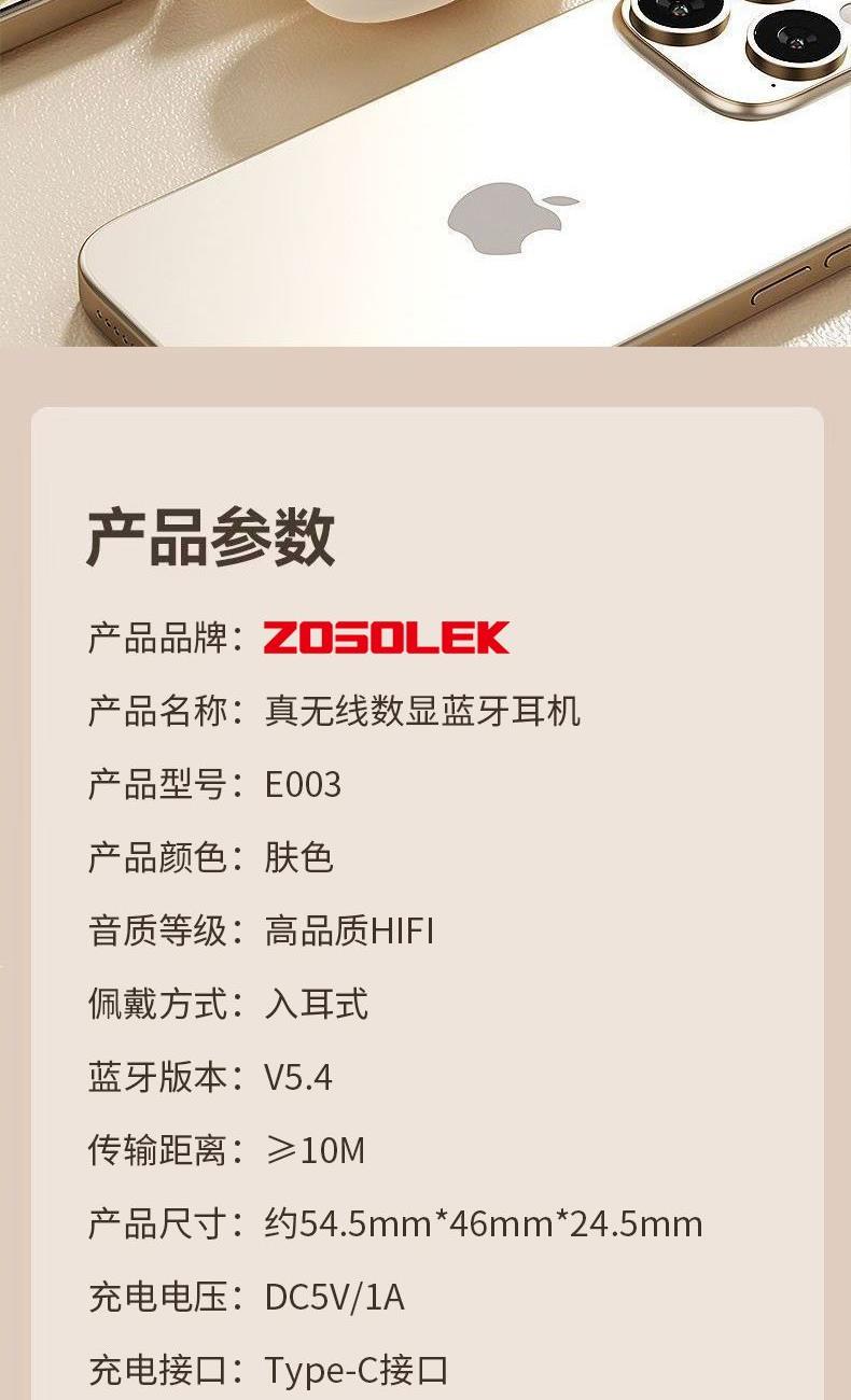 致尚麗和ZOSOLEK真無線數顯藍牙耳機E003