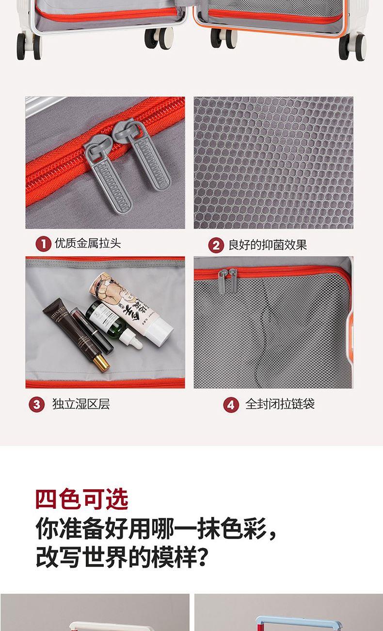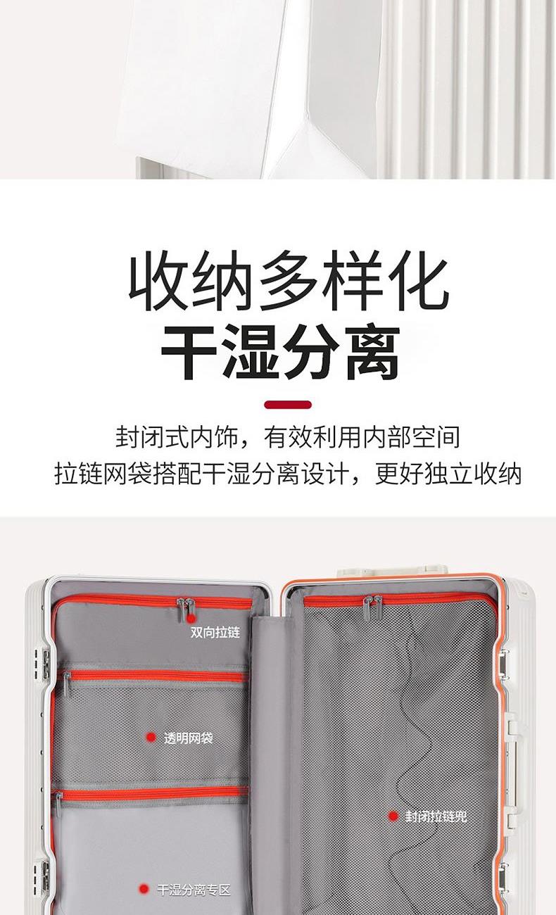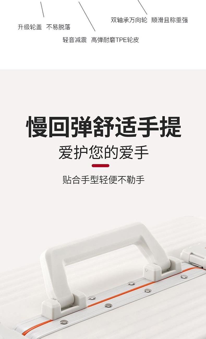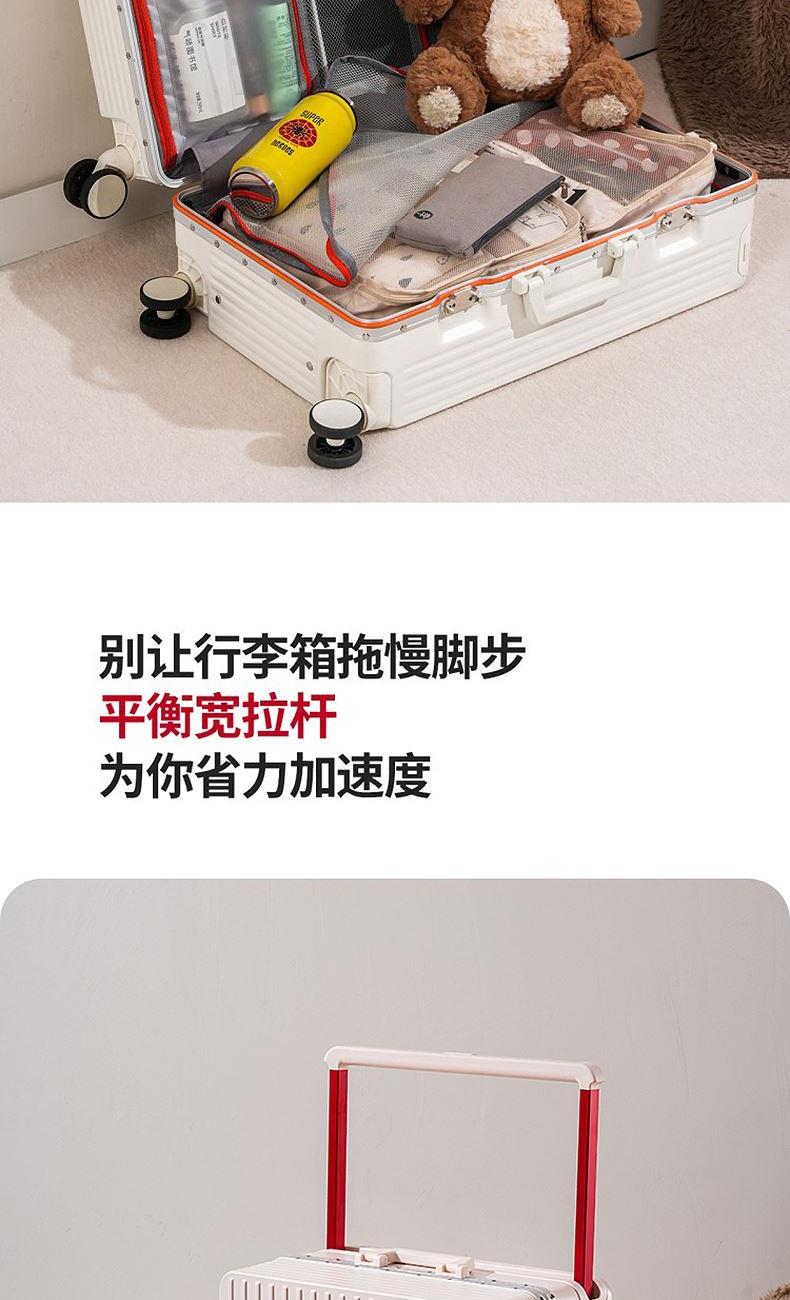 1、加厚PC合金外殼及鋁框和合頁,防刮堅(jiān)固,耐磨防爆;2、新款彈壓隱藏式加厚寬體拉桿設(shè)計(jì),拉桿一按自動彈出;3、寬體拉桿箱內(nèi)空間比傳統(tǒng)拉桿箱更大更平整;4、帶慢回彈頂部和側(cè)部提手,豎提橫提都方便;5、側(cè)部頂腳防剮蹭,同時(shí)帶方便行李掛架功能;6、大雙網(wǎng)結(jié)構(gòu),干濕分離,分區(qū)合理;7、帶USB充電口及隱藏式杯架,出行更方便,8、耐用撞色合金拉桿,舒適手提,穩(wěn)固順滑;9、雙嵌入式三碼密碼鎖,安全性高,放心旅行;10、TPE萬向靜音飛機(jī)輪,高承重,肆意而行。
