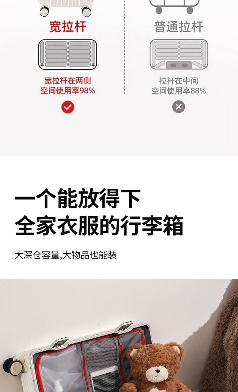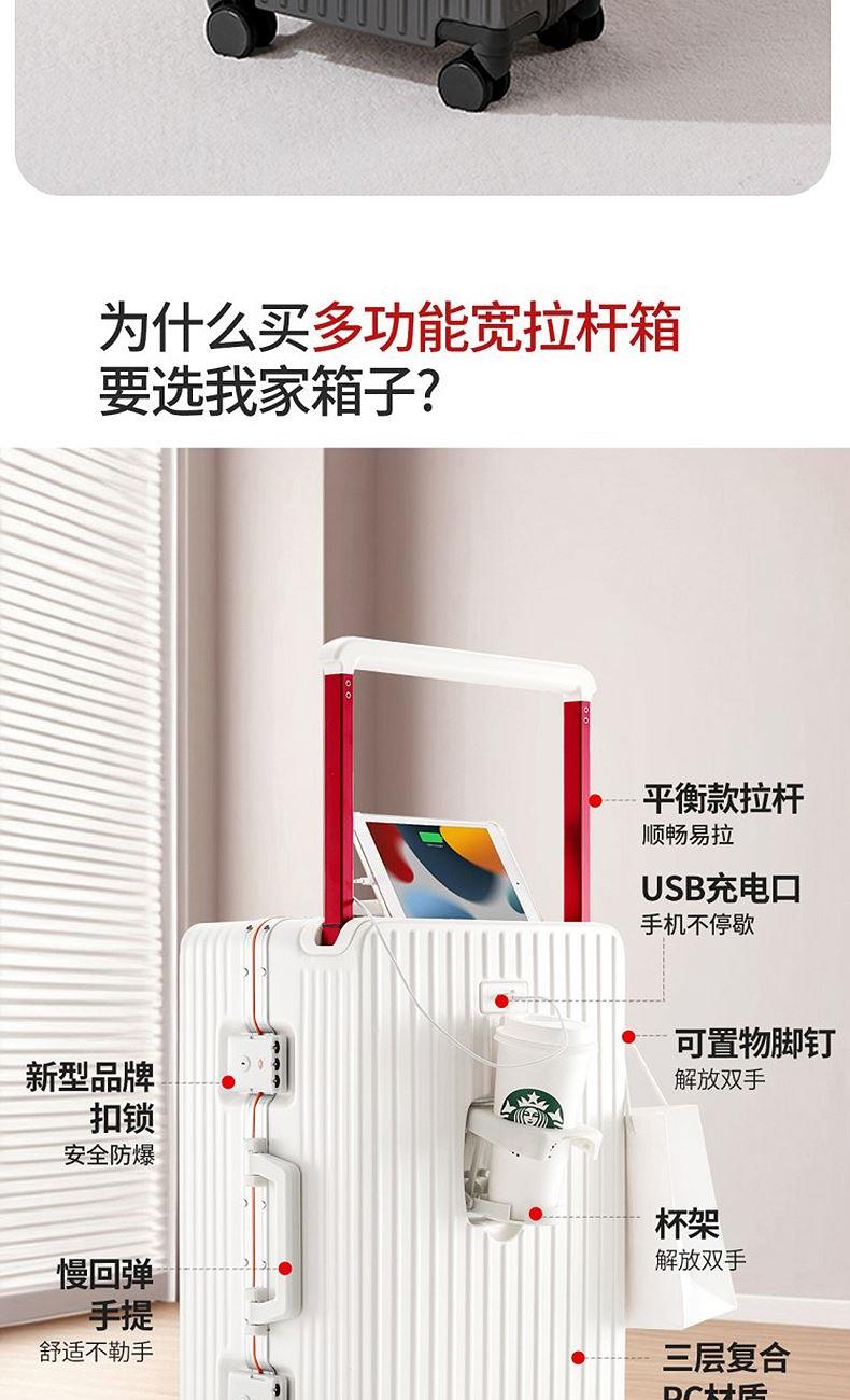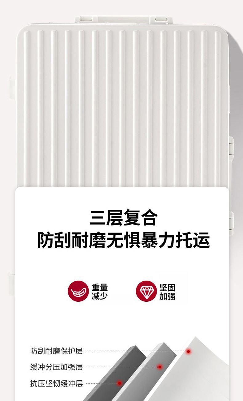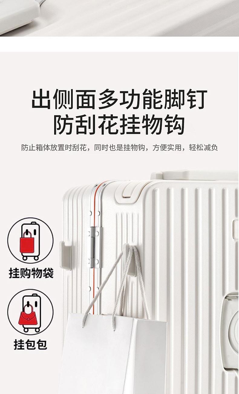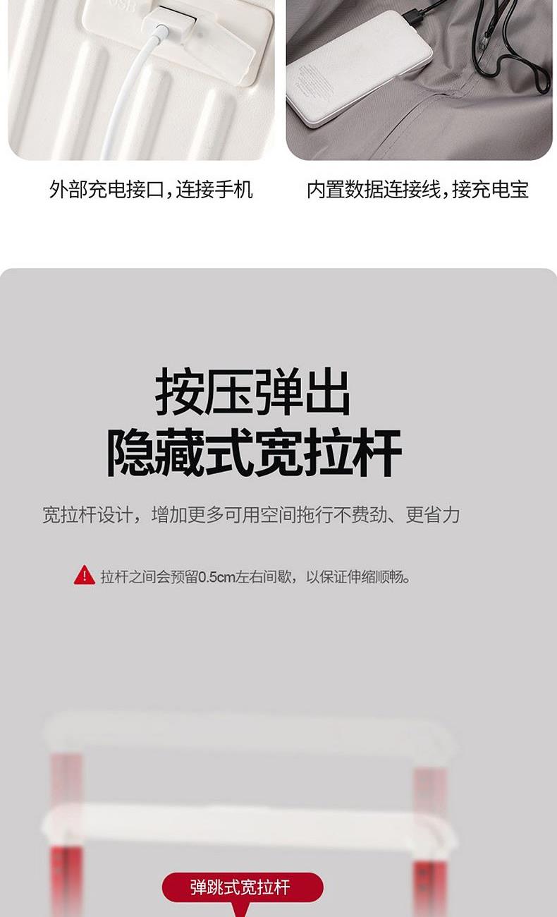 1、加厚PC合金外殼及鋁框和合頁,防刮堅(jiān)固,耐磨防爆;2、新款彈壓隱藏式加厚寬體拉桿設(shè)計(jì),拉桿一按自動彈出;3、寬體拉桿箱內(nèi)空間比傳統(tǒng)拉桿箱更大更平整;4、帶慢回彈頂部和側(cè)部提手,豎提橫提都方便;5、側(cè)部頂腳防剮蹭,同時(shí)帶方便行李掛架功能;6、大雙網(wǎng)結(jié)構(gòu),干濕分離,分區(qū)合理;7、帶USB充電口及隱藏式杯架,出行更方便,8、耐用撞色合金拉桿,舒適手提,穩(wěn)固順滑;9、雙嵌入式三碼密碼鎖,安全性高,放心旅行;10、TPE萬向靜音飛機(jī)輪,高承重,肆意而行。